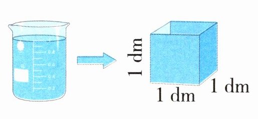 【解析】:通过将量杯里的1升水全部倒入棱长为1分米的正方体容器,发现正好装满,这就表明该正方体容器的容量与1升水的体积相等,所以可以得出棱长为1分米的正方体容器的容量是1升。
