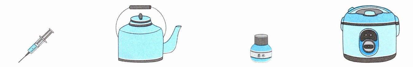 1. 下面容器大约能盛水多少升? 在合适的答案下面画“√”。