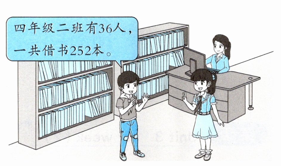 (2)252 本书平均分给 36 位同学,每人 6 本,还余 36 本,够每位同学再借 1 本,实际每位同学借了 7 本书,所以初商 6 偏小,要把商调大。