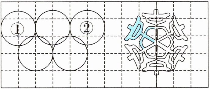 (1)①号环向( )平移( )格到②号环的位置。请画出由这五个圆组成的图形的对称轴。
