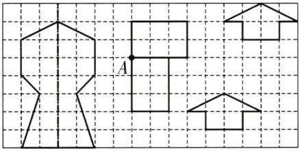 (3)把方格纸中最右边图形先向下平移5格,再向左平移2格,画出平移后的图形。