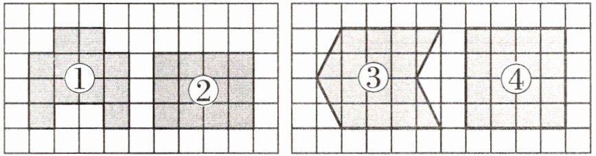 完全解答 方法一:数方格法。在数方格时,不满一格就按半格算。图①、图②都有12格,所以这两个图形的面积相等;图③、图④都有16格,所以这两个图形的面积也相等。方法二:转化法。观察图①,发现如果把上面的两个小正方形向下平移3格,那么这个图形就被转化成与图②完全相同的图形。观察图③,发现如果把左边的三角形向右平移4格,那么这个图形就被转化成与图④完全相同的正方形。