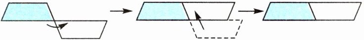 (2)拼成的平行四边形的底与梯形的上底、下底有什么关系?平行四边形的高与梯形的高有什么关系?每个梯形的面积与拼成的平行四边形的面积呢?