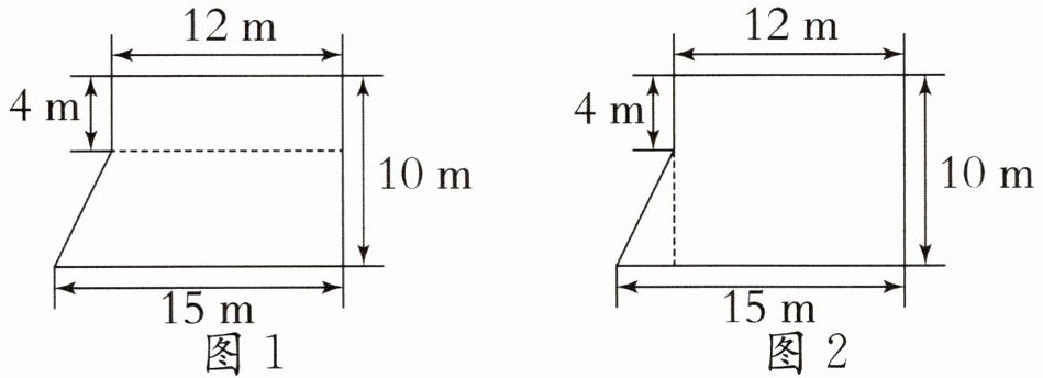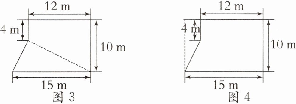方法四:$15×10-(4+10)×(15-12)÷2= 129$(平方米)
