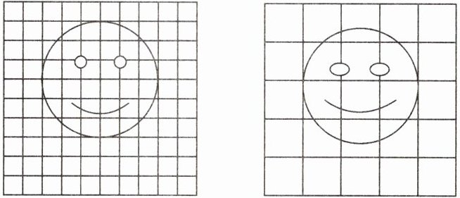 1. 右下方的2个大正方形的边长都是10厘米,先计算每个大正方形中1个小方格的面积,再估计笑脸的面积。