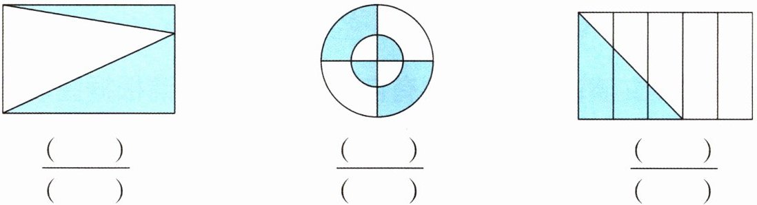 一 用分数表示下面各图中的涂色部分。
