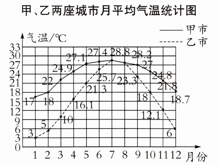 )月份;乙市气温最低的是(1