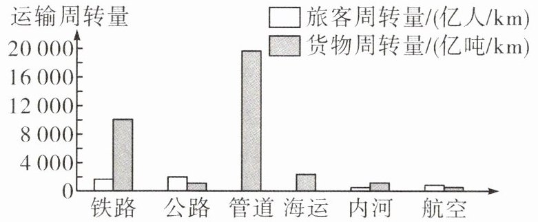 5. 读俄罗斯主要交通运输方式及其运输周转量图,推断俄罗斯货物运输的主要方式是(