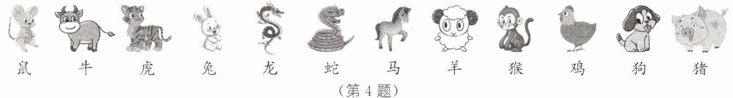 4. 我国民间通常用 12 种动物(十二生肖)来表示不同的年份.它们排列顺序如图所示.