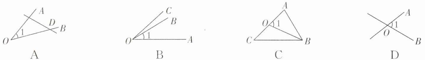 2. 下列四个图形中,能用$∠1$,$∠AOB$,$∠O$三种方法表示同一个角的图形是(