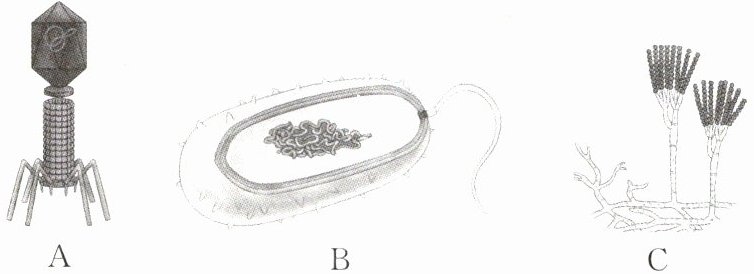 5. 如图,A 为病毒的结构模式图,B 和 C 为其他类型的生物,回答下列问题。