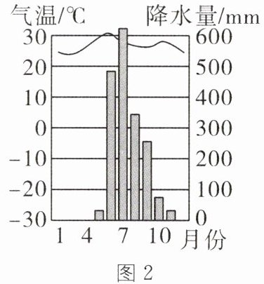 在孟加拉国中南的戈巴尔甘尼县,每逢雨季,农民收集水葫芦、稻秆等杂物,与浮萍混合做成漂浮在水上的有机苗床,在其上种植农作物,形成“漂浮菜园”。图1为“漂浮菜园”景观,图2示意戈巴尔甘尼县的气候资料。据此回答5~6题。
