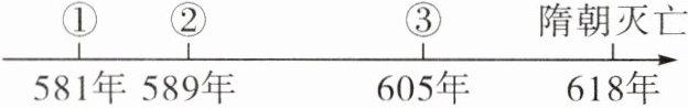 1. 如图是隋朝时期发生的重大历史事件的时间轴。与图中时间点②相关的历史事件是(