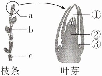 (填序号)不断伸长,促使枝条上的c不断伸长。