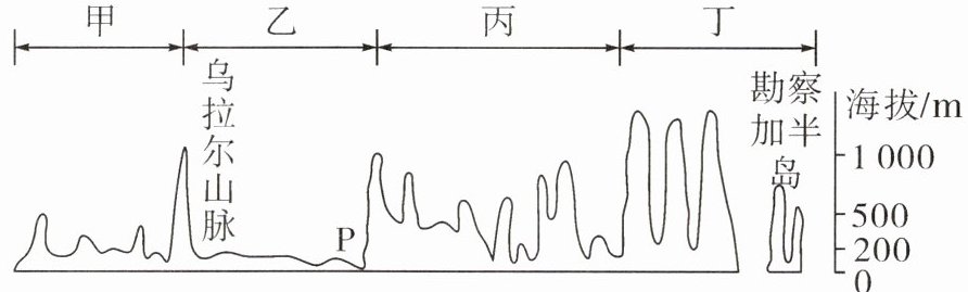 读沿60°N纬线的俄罗斯地形剖面图,回答6~7题。