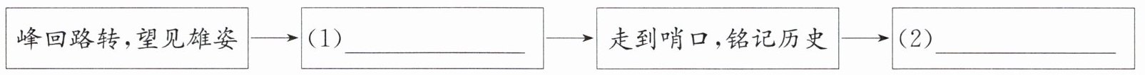 1. 小语发现本文以登临黄洋界的游踪为行文线索,串联起作者的见闻与感受,脉络清晰,请你帮忙整理批注,完成填空。