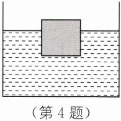 4. 如图所示,质量为1kg的正方体木块静止在水面上时,露出水面的体积为总体积的$\frac {1}{5}$.($ρ_{水}= 1.0×10^{3}kg/m^{3}$,$g取10N/kg$)求: