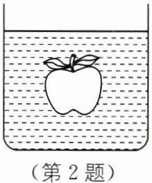 2. 如图所示,小明用手将重力为1.5N、体积为$1.4×10^{-4}m^{3}$的苹果轻轻放入水中,直至苹果浸没,此过程中水对容器底部的压强将