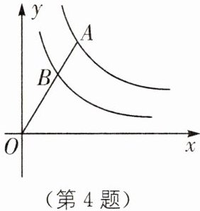 4. 反比例函数$y= \frac{9}{x}$,$y= \frac{4}{x}$的图像如图所示,点$A在y= \frac{9}{x}$的图像上,连接$OA交y= \frac{4}{x}的图像于点B$,则$AB:BO$的值为
