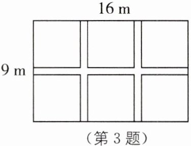 3. 如图,某小区在一块长为 16 m,宽为 9 m 的矩形空地上新修三条宽度相同的小路,其中一条和矩形的一边平行,另外两条和矩形的另一边平行,空地剩下的部分种植花草,使得花草区域占地面积为 $ 120m^{2} $。设小路的宽度为 $ xm $,则下列方程: