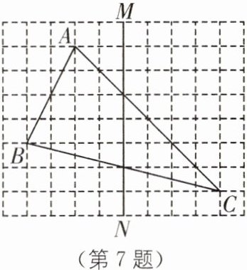 7. 如图,方格纸上每个小正方形的边长均为1个单位长度,△ABC的三个顶点都在格点上(两条网格线的交点叫格点)。