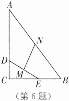 6. 如图,在$\triangle ABC$中,$∠C= 90^{\circ}$,$AB= 10$,$AC= 8$,$BC= 6$,线段$DE的两个端点D$、$E分别在边AC$、$BC$上滑动,且$DE= 4$,若点$M$、$N分别是DE$、$AB$的中点,则$MN$的最小值为______