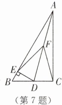 7. 如图,在$\triangle ABC$中,$∠ACB= 90^{\circ}$,点$D是边BC$上一点,$DE⊥AB于点E$,点$F是线段AD$的中点,连接$EF$、$CF$.