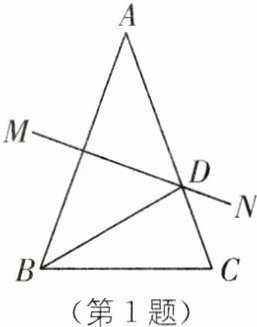 1. 如图,$AB= AC$,$∠A= 40^{\circ}$,$AB的垂直平分线MN交AC于点D$,则$∠DBC$为(