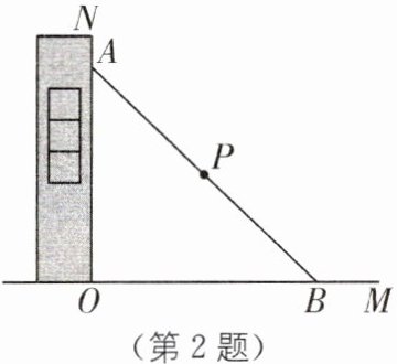 2. 如图,一根木棍$(AB)$斜靠在与地面(OM)垂直的墙(ON)上,设木棍中点为$P$,若木棍$A$端沿墙下滑,且$B$端沿地面向右滑行.在此滑动过程中,点$P到点O$的距离(