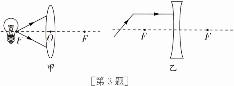 (1)如图甲所示,把小灯泡放在凸透镜的焦点上,请画出从小灯泡发出的两条光线经凸透镜折射后的光线.