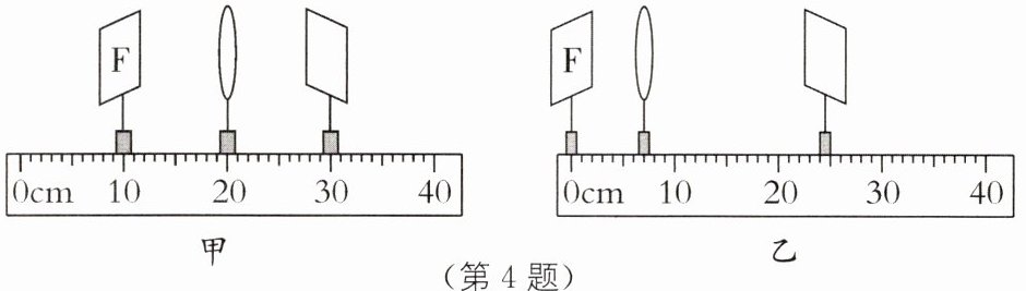 (2)小华将"F"光源、凸透镜和光屏按照如图甲所示位置放置时,光屏上能成清晰的像,所成的像是