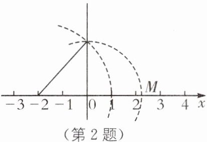 2. 如图,根据尺规作图痕迹,判断点 $ M $ 在数轴上表示的数是(