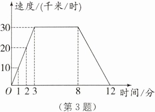 3. 如图所示的是一辆汽车行驶的速度(千米/时)与时间(分)之间的变化图像,下列说法正确的是(