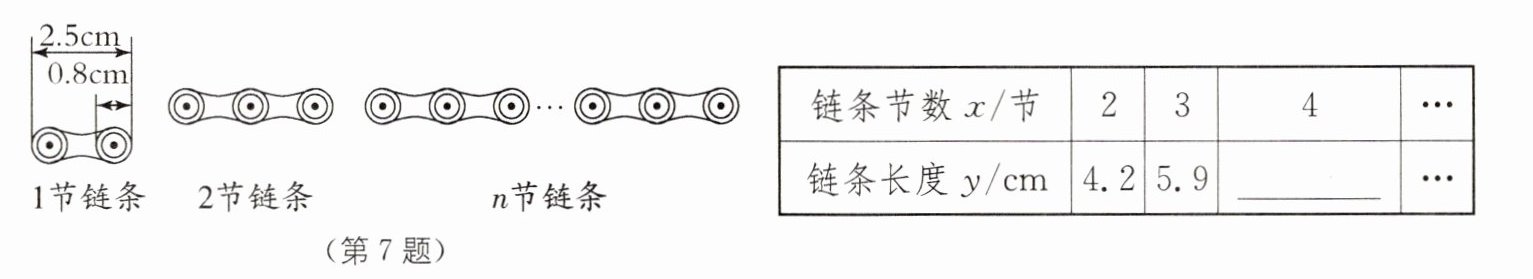 7. 如图,某品牌自行车每节链条的长度为2.5cm,交叉重叠部分的圆的直径为0.8cm。