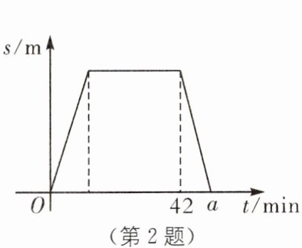 2. 小明从家出发到商场购物后返回,如图表示的是小明离家的路程s(m)与时间t(min)之间的函数关系,已知小明购物用时30min,返回速度是去商场的速度的1.2倍,则a的值为(