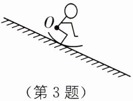 3. 如图所示是一名滑雪运动员沿斜面下滑时的简化图,其中O为滑雪运动员的重心,请你在图中画出运动员受到的重力和摩擦力的示意图.