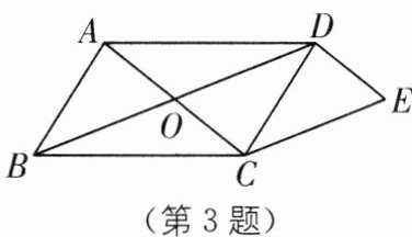 3. 如图,$□ ABCD的对角线AC$、$BD相交于点O$,$DE// AC$,$CE// BD$,若$AC = 3$,$BD = 5$,则四边形$OCED$的周长为(