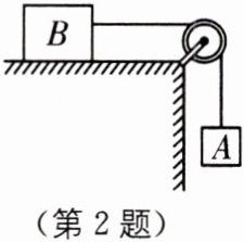 2. 如图所示,当右端挂一个重为 $ 10N $ 的物体 $ A $ 时,物体 $ B $ 在水平桌面上恰好能向右做匀速直线运动,若现在要使物体 $ B $ 水平向左做匀速直线运动,则应在物体 $ B $ 上施加一个水平向
