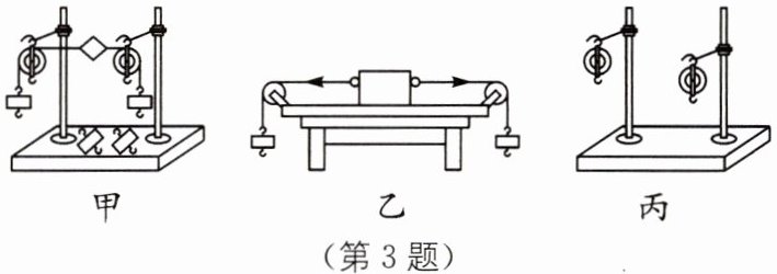 3. 如图所示是小芳和小超利用木块、卡片、滑轮和钩码等器材探究“二力平衡的条件”实验。