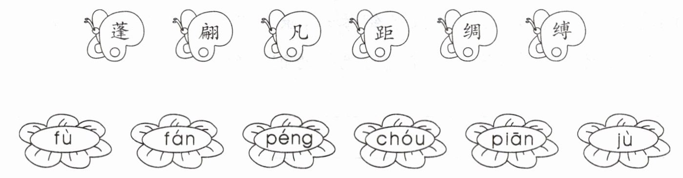 蓬——péng 翩——piān 凡——fán 距——jù 绸——chóu 缚——fù