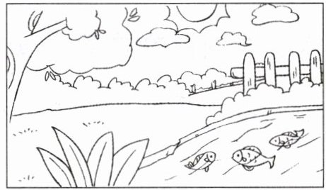 今天天气真好,太阳公公笑眯眯地挂在天空,几朵白云悠悠地飘着。大树枝叶繁茂,树下的小草生机勃勃。一条清澈的小河静静流淌,几条小鱼在水中欢快地游来游去,它们一会儿吐泡泡,一会儿追逐嬉戏。远处的栅栏整齐地排列着,仿佛在守护着这片美丽的景色。看着这一切,我仿佛也置身于这美好的大自然中,心情格外舒畅,真想变成一条小鱼和它们一起玩耍,或者躺在草地上享受这温暖的阳光。