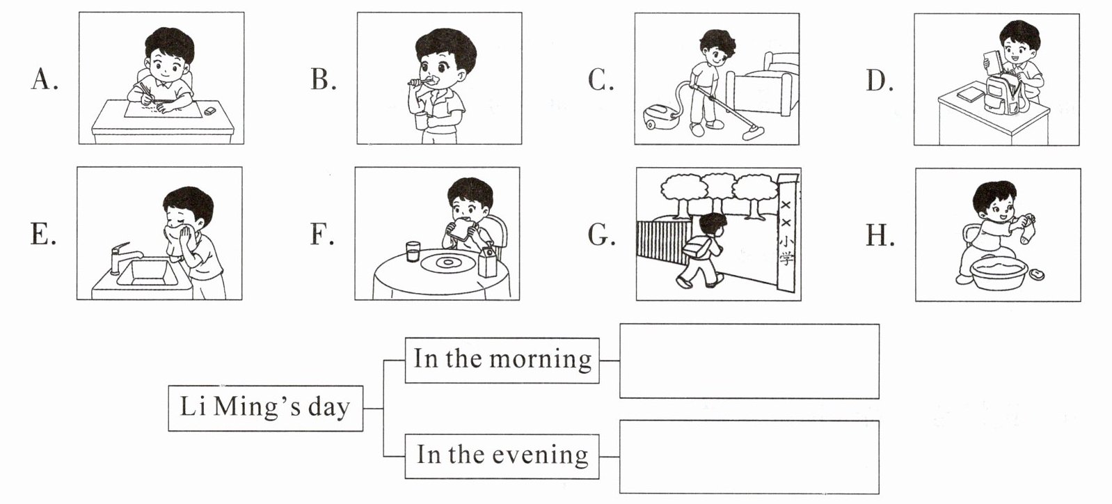 任务一:根据短文内容,选图补全思维导图(将序号填在方框内)。