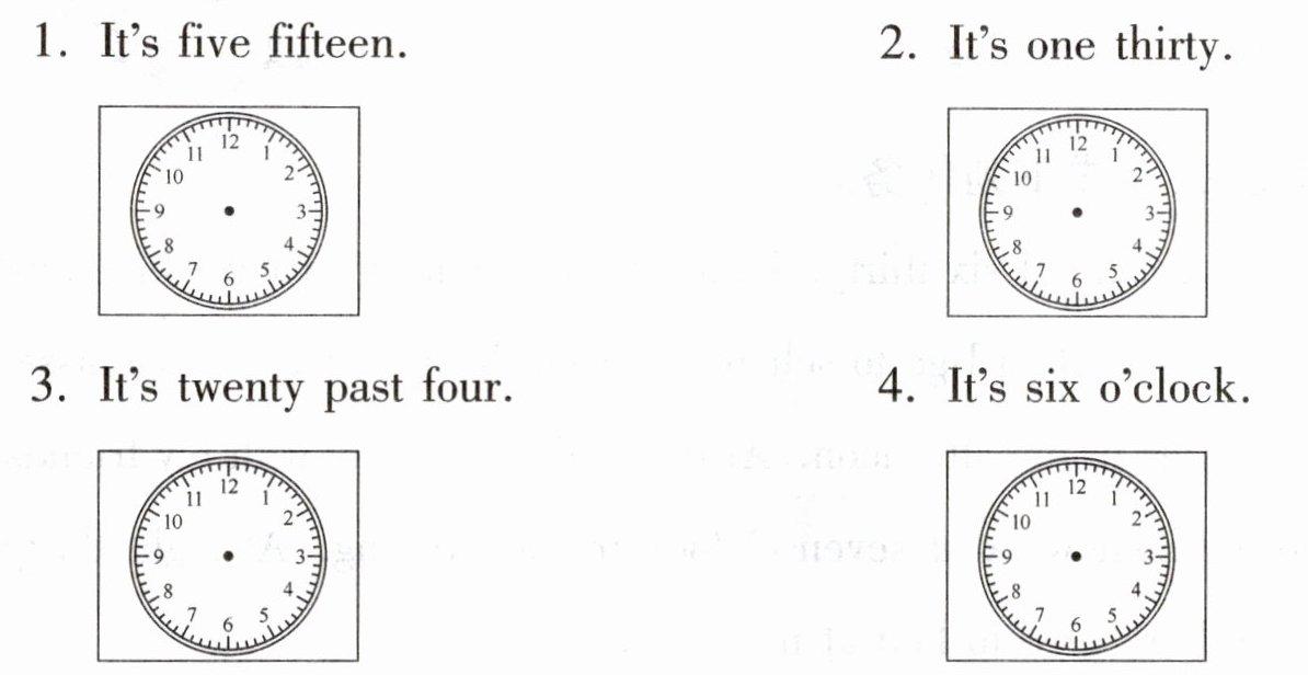 Ⅰ. 读句子,给下列时钟画上正确的时针和分针。