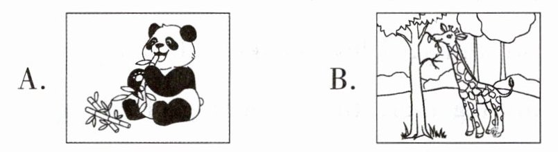 A. My favourite animal is the panda. It has short legs. B. The tiger is my favourite animal. Its tail is long.