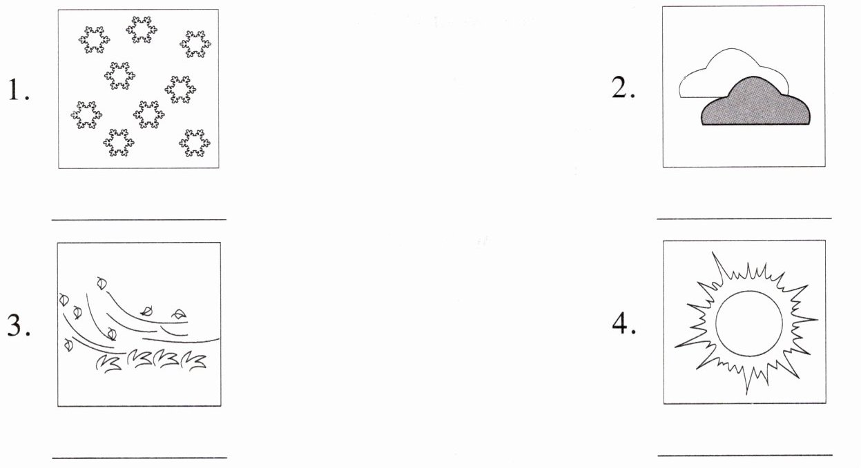 1. snow(y) 2. cloud(y) 3. wind(y) 4. sun(ny)