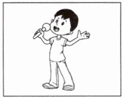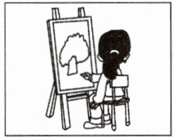 1. She is drawing a picture. 2. He is/He's singing (a song). 3. Yes, please. 4. The baby (is sleeping).
