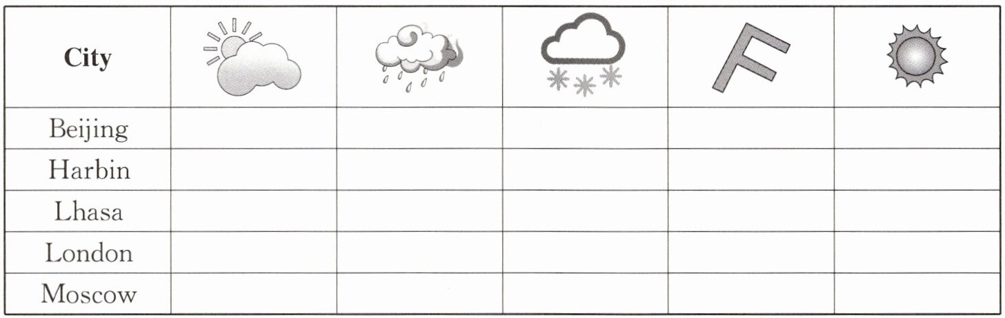 二、听短文,根据短文内容,在表格正确的位置画“√”(短文读三遍)