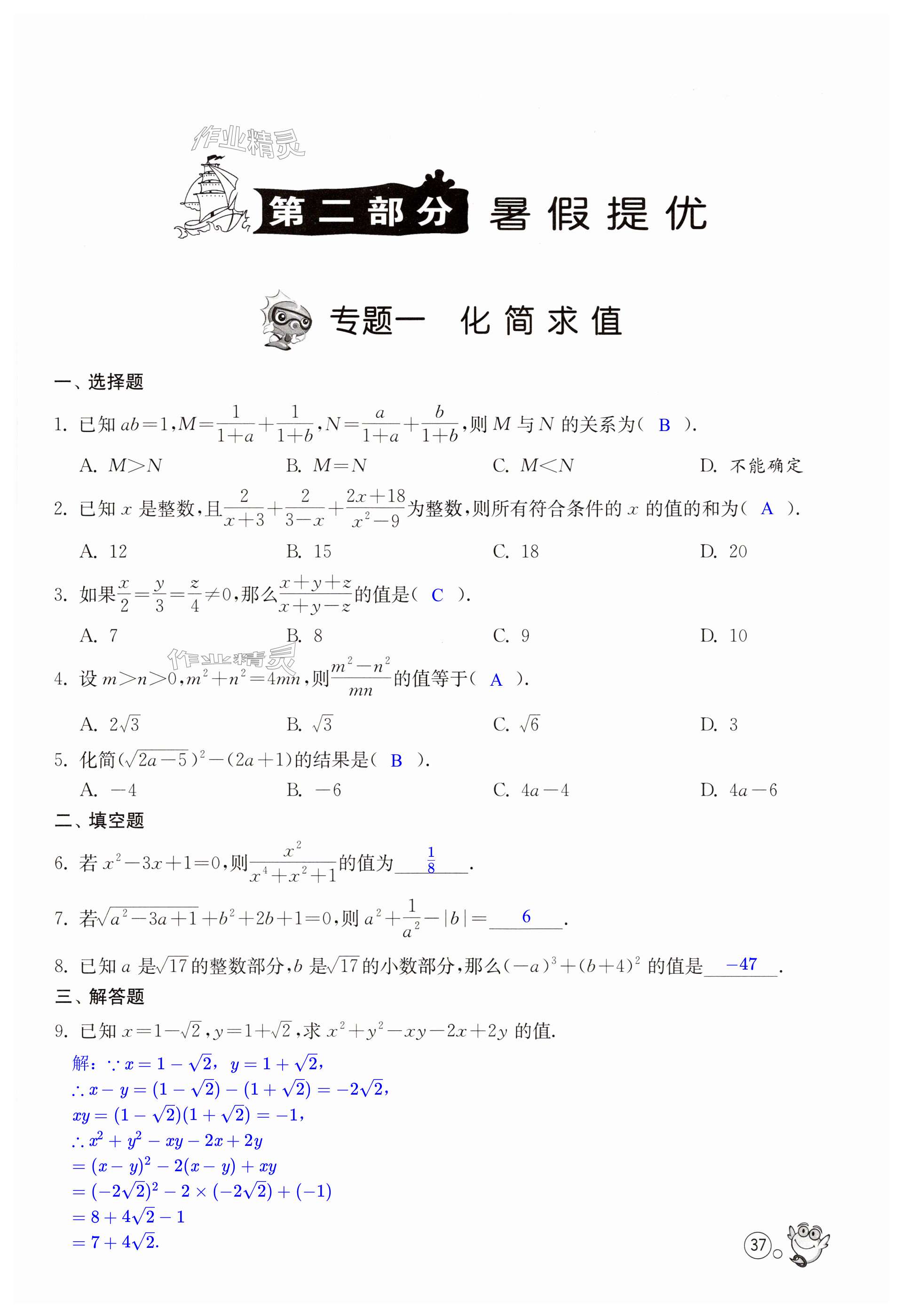 注:目前有些书本章节名称可能整理的还不是很完善,但都是按照顺序排列的,请同学们按照顺序仔细查找。练习册 2025年快乐暑假江苏人民出版社八年级数学苏科版 答案主要是用来给同学们做完题方便对答案用的,请勿直接抄袭。