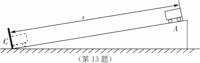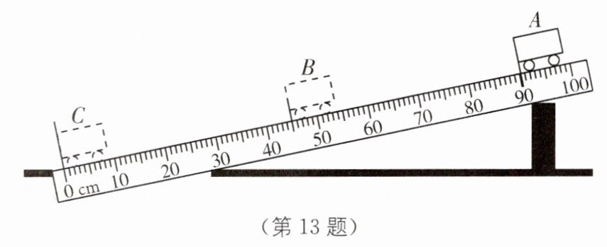 13. 如图所示是小明“测量小车运动的平均速度”的实验装置,让小车从斜面的 A 点由静止滑下,分别测出小车到达 B 点和 C 点的时间.