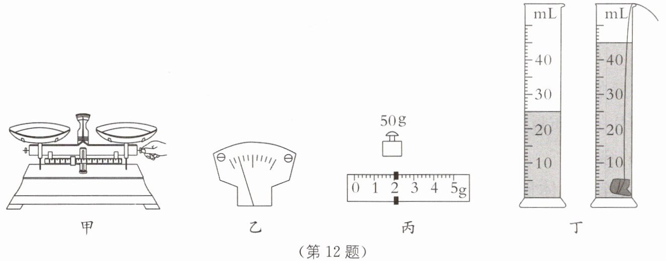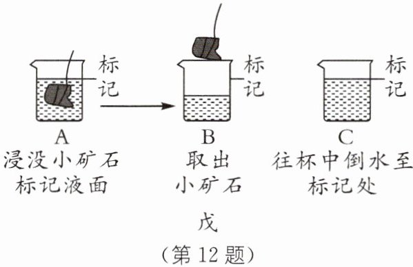 12. 小伟在地质公园进行研学活动时,捡到一块形状不规则的小矿石.他想知道小矿石的密度,设计如下实验方案.